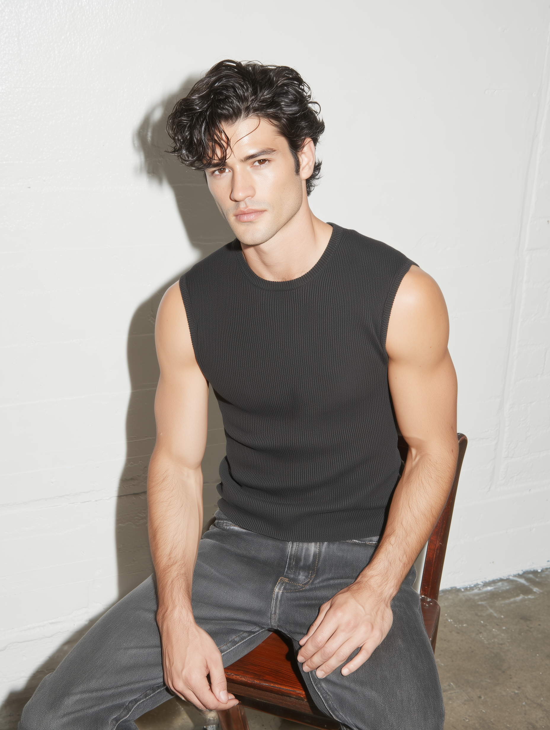 A sleeveless layer built for balance, The Line Tank highlights the shoulders and arms while maintaining a clean drape through the torso. Cut from a slightly weightier ribbed cotton blend, it’s designed to create contrast between upper-body structure and waistline lightness. Cropped just high enough to extend the legs and define the silhouette — no excess, no distraction.